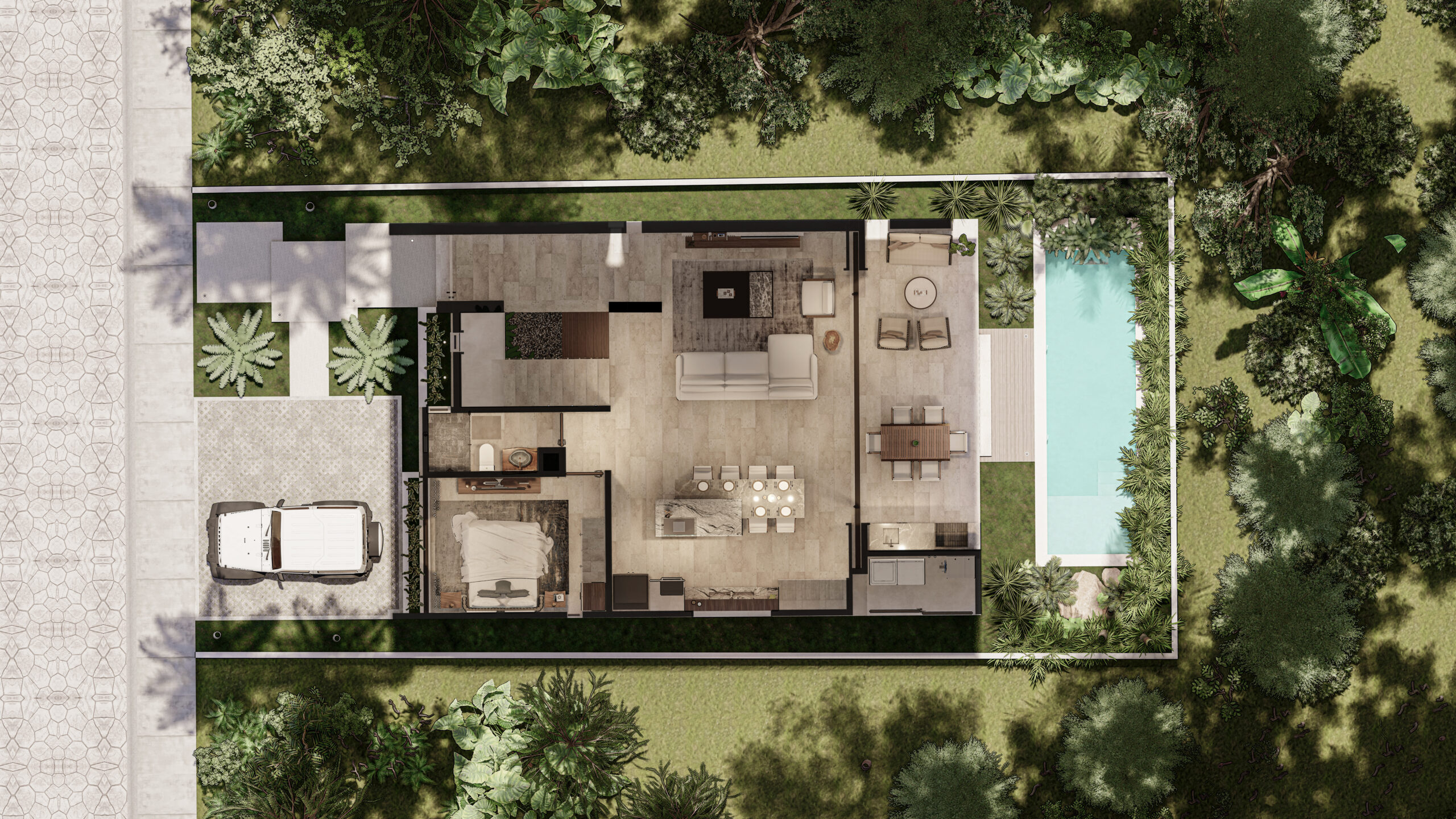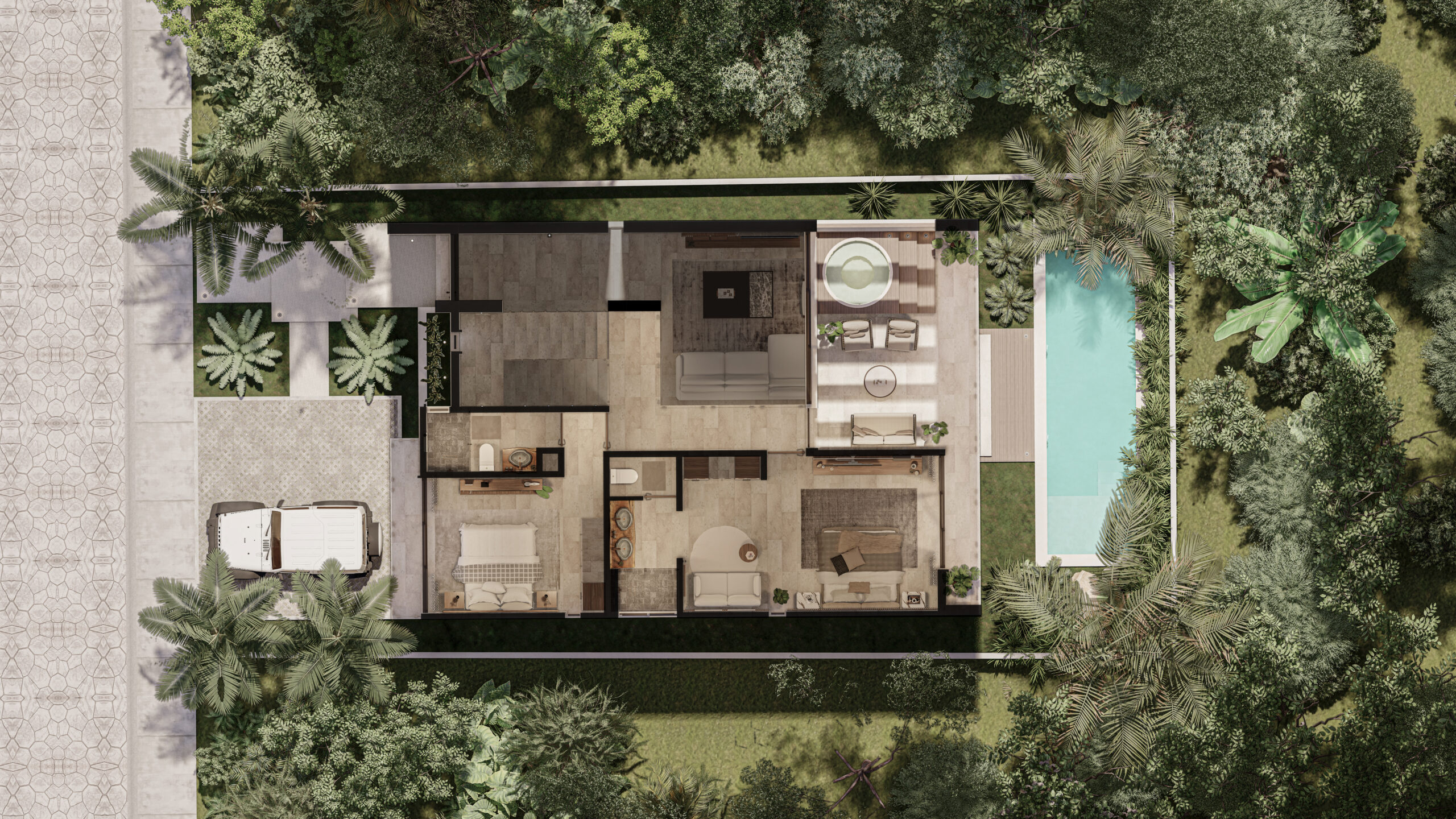 La Villa Iguana encarna la elegancia expansiva y el diseño de élite. Con 297.28 m² de construcción distribuidos en dos niveles, este prototipo está pensado para la familia que exige el máximo espacio, privacidad y sofisticación. Iguana no es solo una casa; es un complejo residencial privado que ofrece la mejor calidad de vida dentro del exclusivo Tulum Country Club, con capacidad para integrar grandes áreas sociales y de esparcimiento.